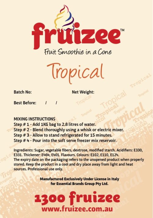 Tropical Fruizee mix, 99.9% fat free and contains no gluten.
